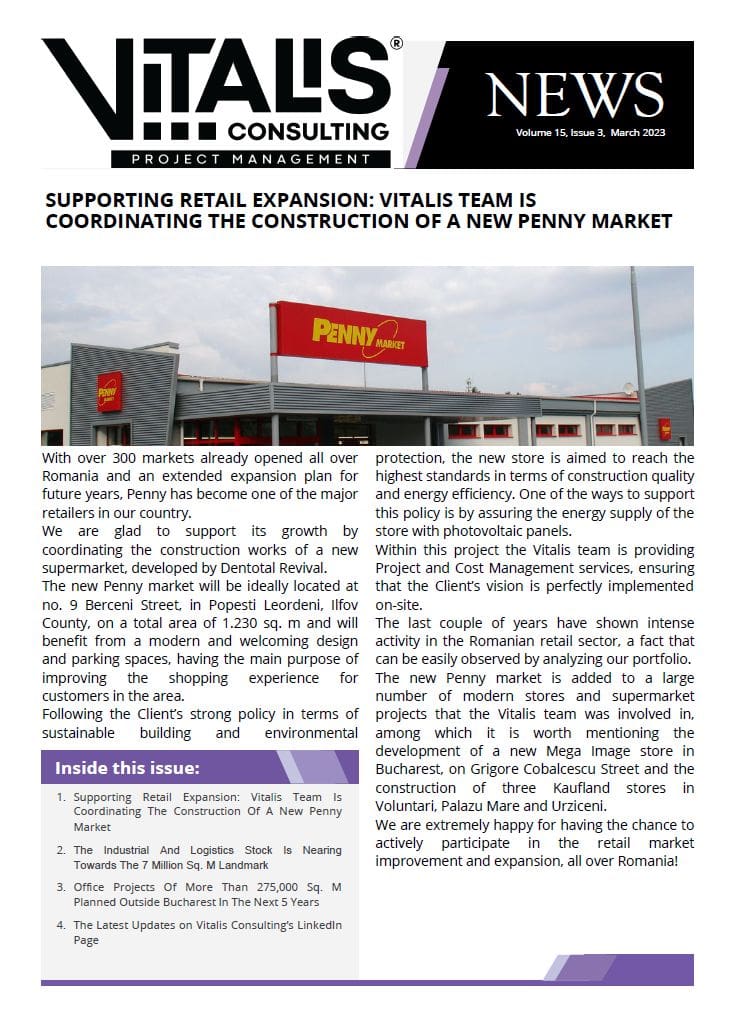 The new Penny market is added to a large number of modern stores and supermarket projects that the Vitalis team was involved in, among which it is worth mentioning the development of a new Mega Image store in Bucharest, on Grigore Cobalcescu Street and the construction of three Kaufland stores in Voluntari, Palazu Mare and Urziceni.